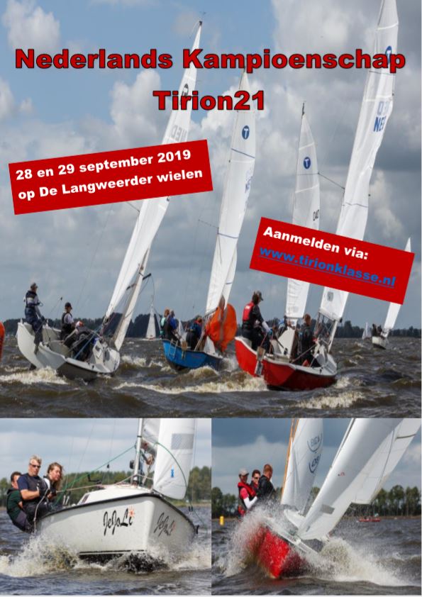 Op zaterdag 28 september en zondag 29 september 2019 wordt het NK Tirion 2019 verzeild. Dit jaar wordt het NK georganiseerd op de Langeweerderwielen door Koninklijke Watersport Vereniging Langweer. Op de zaterdag worden er 4 wedstrijden verzeild en op de zondag 2. Zie voor meer informatie de wedstrijd aankondiging, hieronder in de link te vinden. Het programma ziet er als volgt uit: