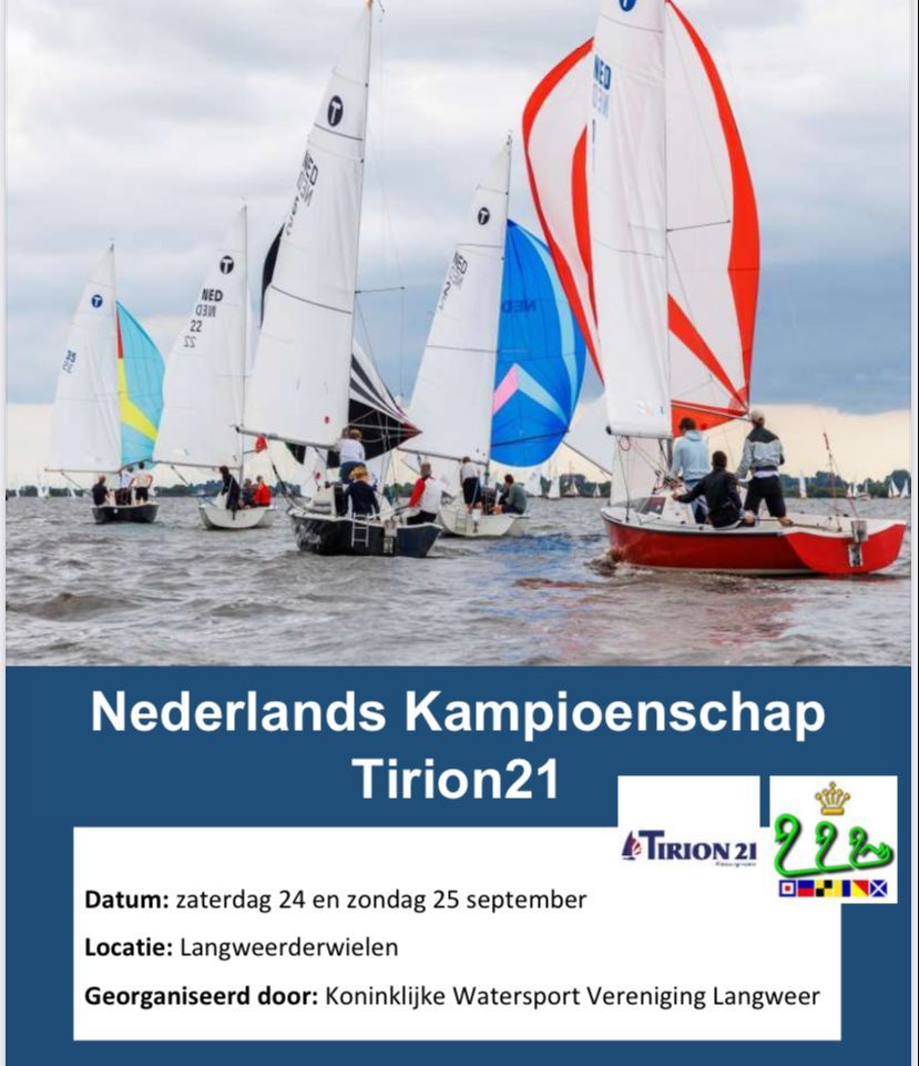 Op zaterdag 24 september en zondag 25 september 2022 wordt het NK Tirion 2022 verzeild. Net zoals de 3 voorgaande edities wordt het NK op de Langeweerderwielen door Koninklijke Watersport Vereniging Langweer georganiseerd. Op de zaterdag worden er 4 wedstrijden verzeild en op de zondag 2. Zie voor meer informatie de wedstrijd aankondiging, hieronder in de link te vinden. Het programma ziet er als volgt uit: