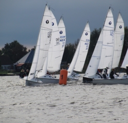 De wedstrijdbaan lag er weldra in en om 10.00 uur exact was de 1e start. Al snel ontstond er een tweedeling in het veld. Team Jansma, team Zijm, team Fier en Ale&Co toonden meteen hun ambities. Het was stuivertje wisselen over en weer, waarbij team Zijm liet blijken dat ze niet voor niks de Sneekweek had gewonnen en hoogstwaarschijnlijk de te kloppen Tirion zou zijn. Achter deze 4 boten was de strijd overigens niet minder spannend, ook hier wisselde men voortdurend van positie.